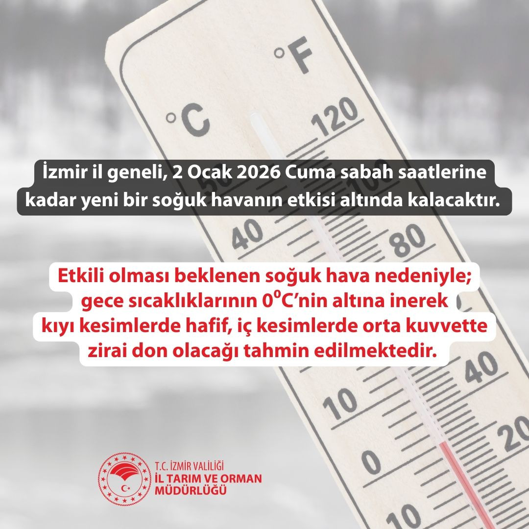 İzmir Tarım ve Orman İl Müdürlüğü, çiftçilere bu dönemde zirai donun zararlarını en aza indirmek için alınabilecek tedbirler hakkında bilgilendirme yaptı. Ayrıca, Meteoroloji Genel Müdürlüğü'nün uyarılarının dikkate alınmasının büyük önem taşıdığına dikkat çekildi.